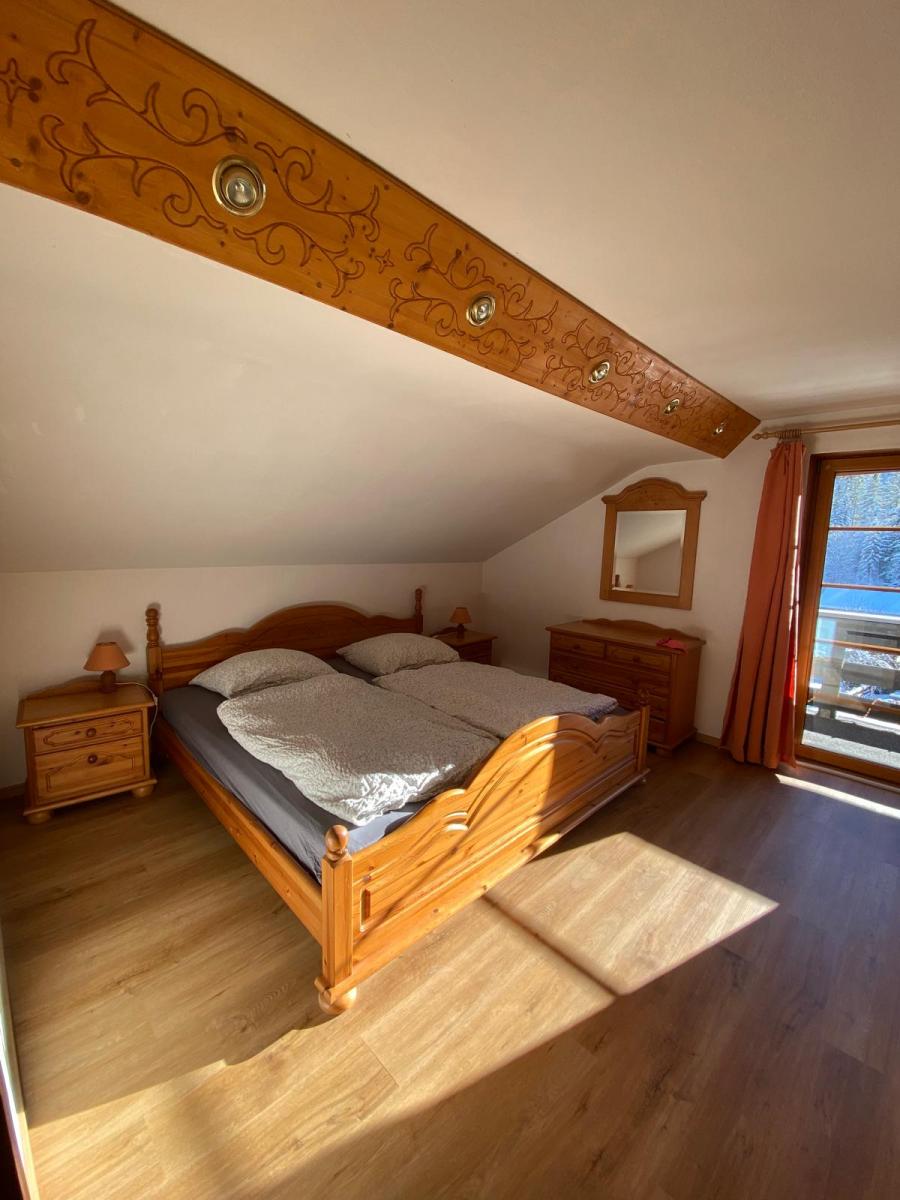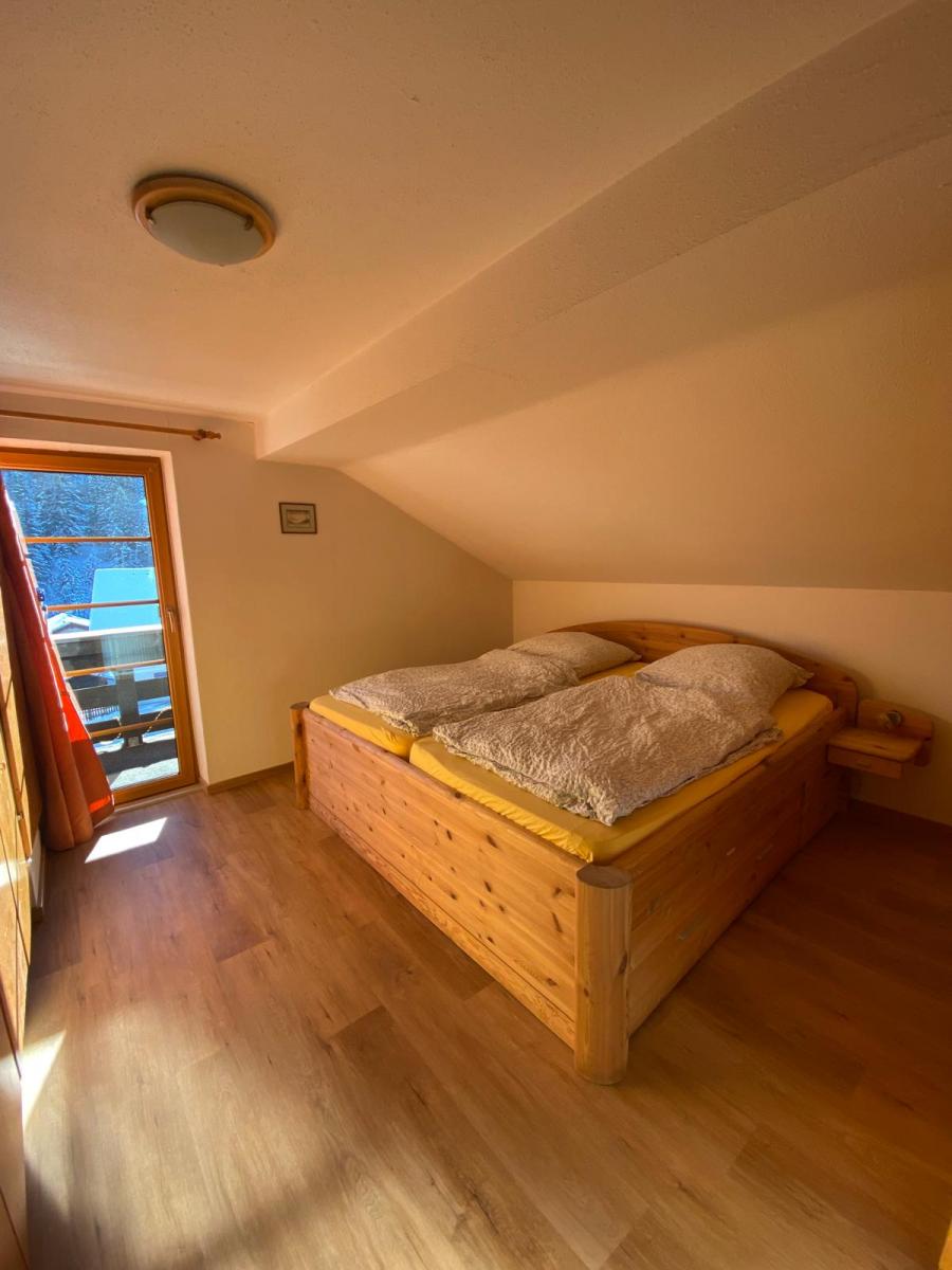 Von beiden Schlafräumen gelangen Sie direkt auf den sonnigen Balkon. Wie in allen unseren Räumlichkeiten, stehen Ihnen auch hier ein Raum für Winterausrüstung, Wanderstöcke oder Schlitten zur Verfügung.